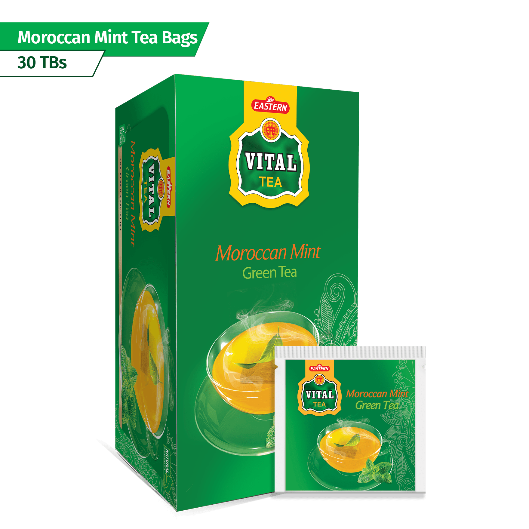 Made from quality green tea leaves and natural Moroccan mint leaves, Moroccan Mint Green Tea brings antioxidants for health, aids digestion, refreshes, enhances cognition, and keeps you hydrated.