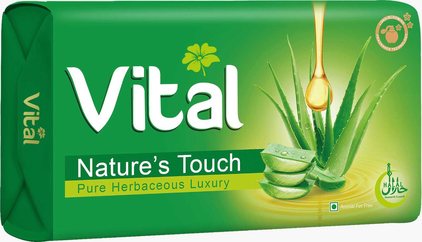Enriched with aloe vera and herbal oils, Vital Nature’s Touch soap gently cleanses, hydrates, and refreshes your skin. With long-lasting fragrance and a formula that’s animal fat free and Halal certified, it’s nature’s pure care in every wash.